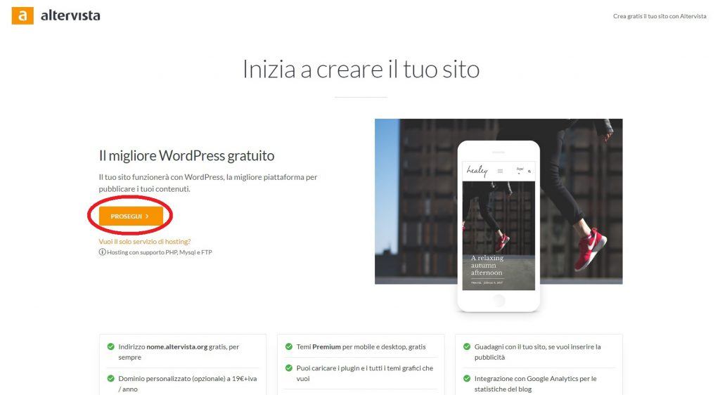 Step 1: clicca su Altervista per andare sul sito e poi clicca sul pulsante “CREA SITO