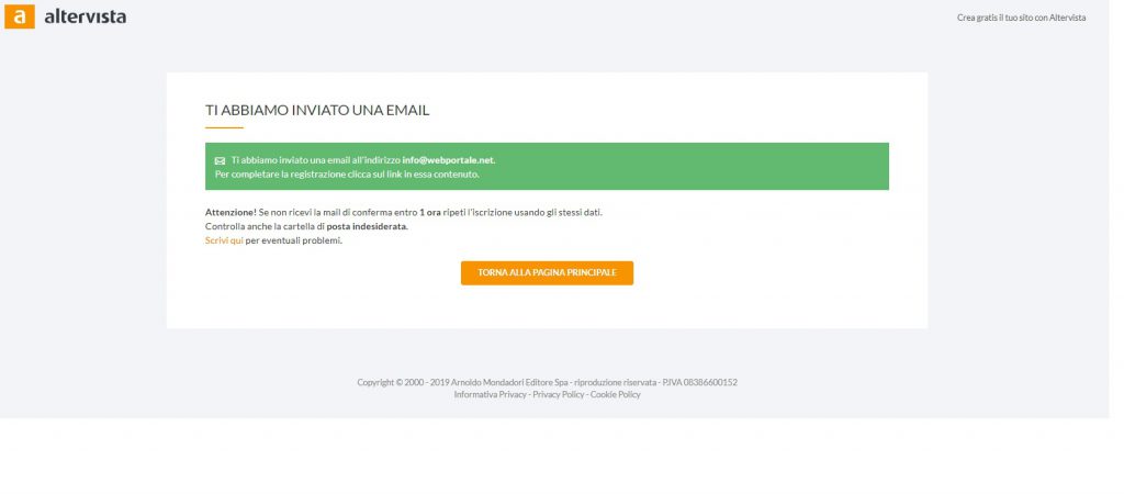 Step 5: La fase registrazione è completata e vi è stata inviata una email per l’Attivazione.