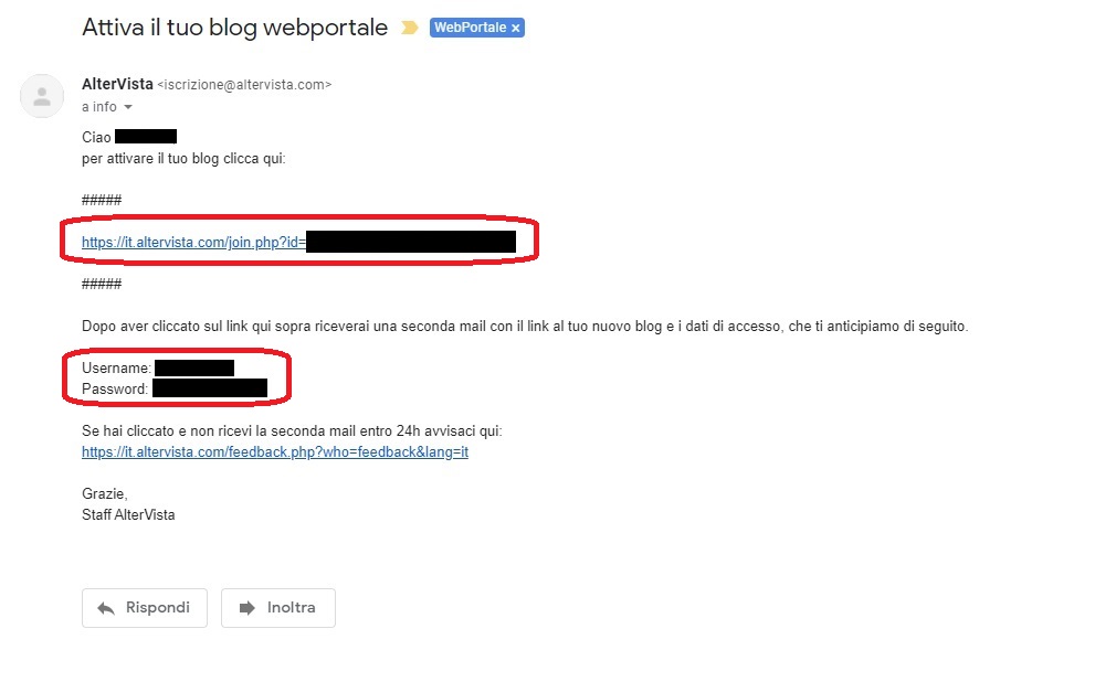 Step 6: Cliccare sul Link che vi è arrivato per Email, troverete anche i dati di accesso