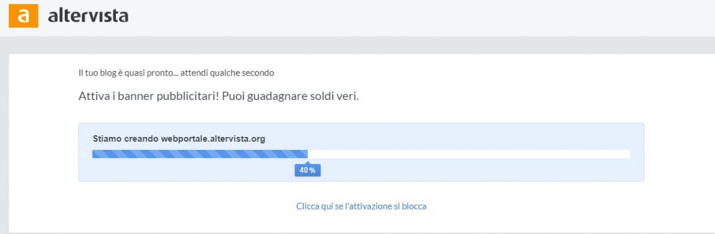 Step 7: una volta cliccato il link inizierà la creazione del sito