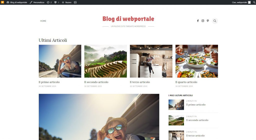 Step 10: Se avete fatto tutto correttamente potrete vedere il sito con dei dati preimpostati di esempio.